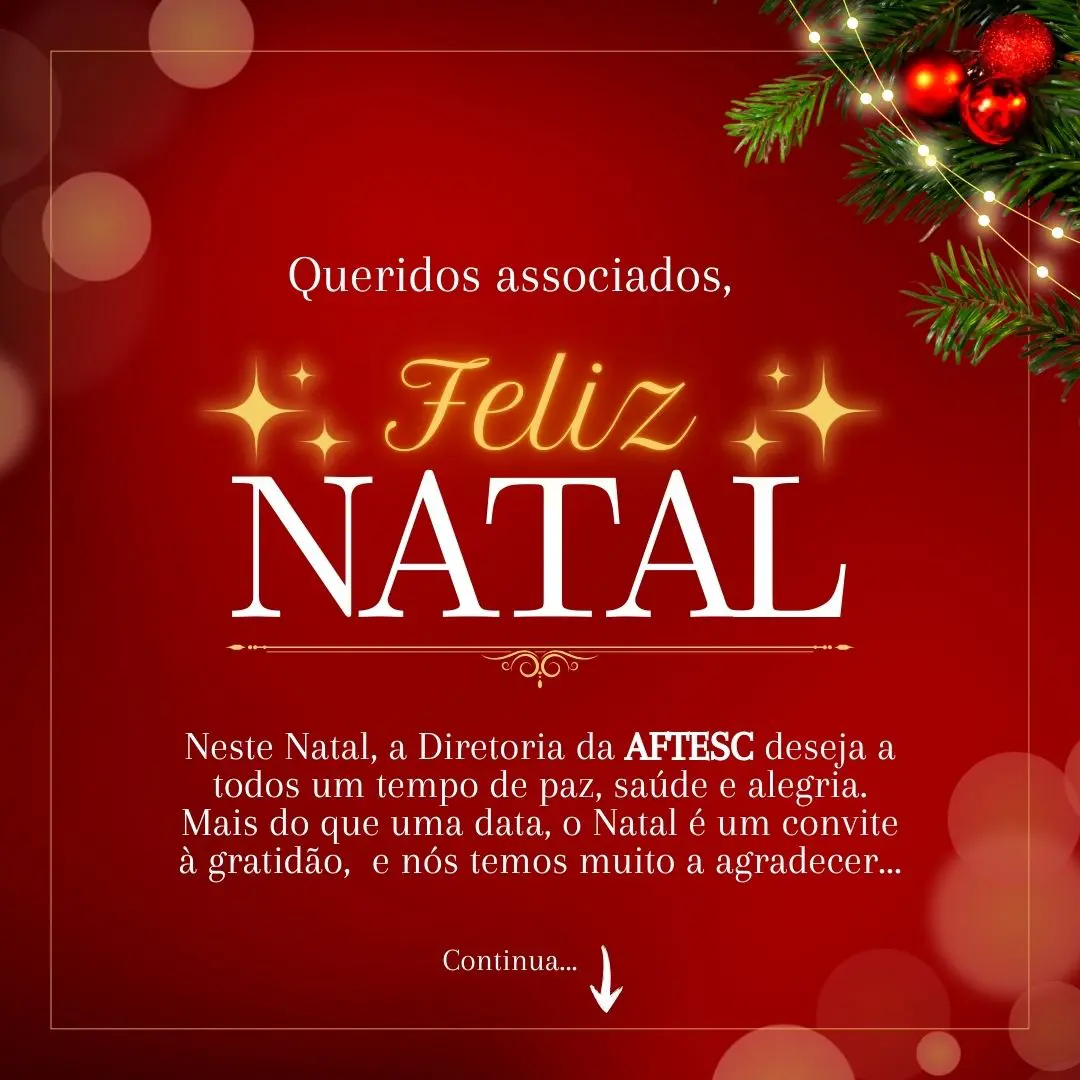 Neste Natal, a Diretoria da AFTESC deseja a todos um tempo de paz, saúde e alegria.
